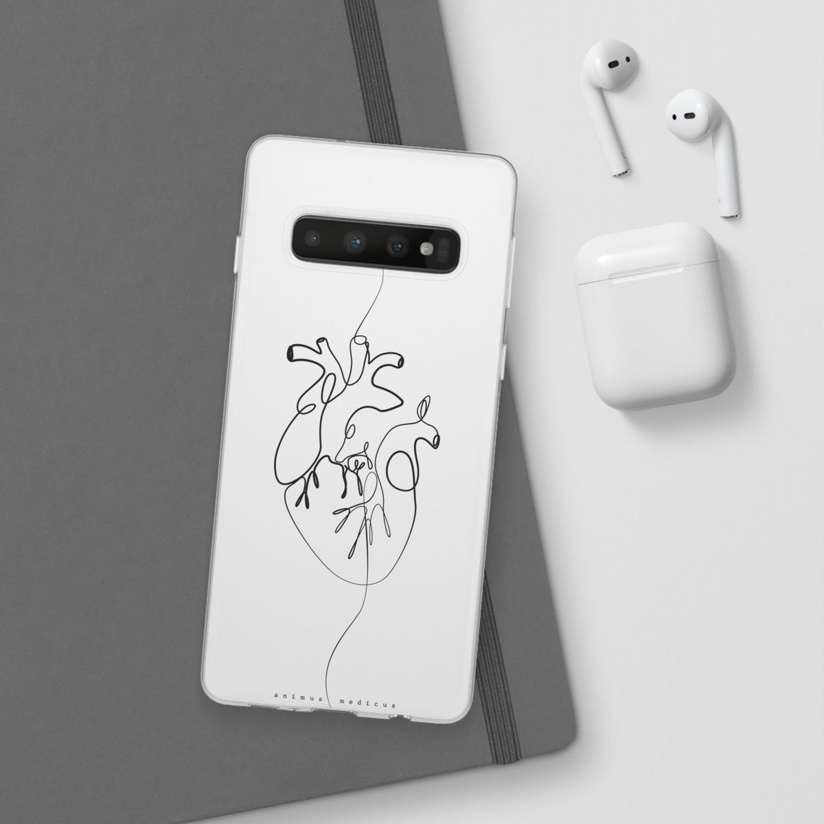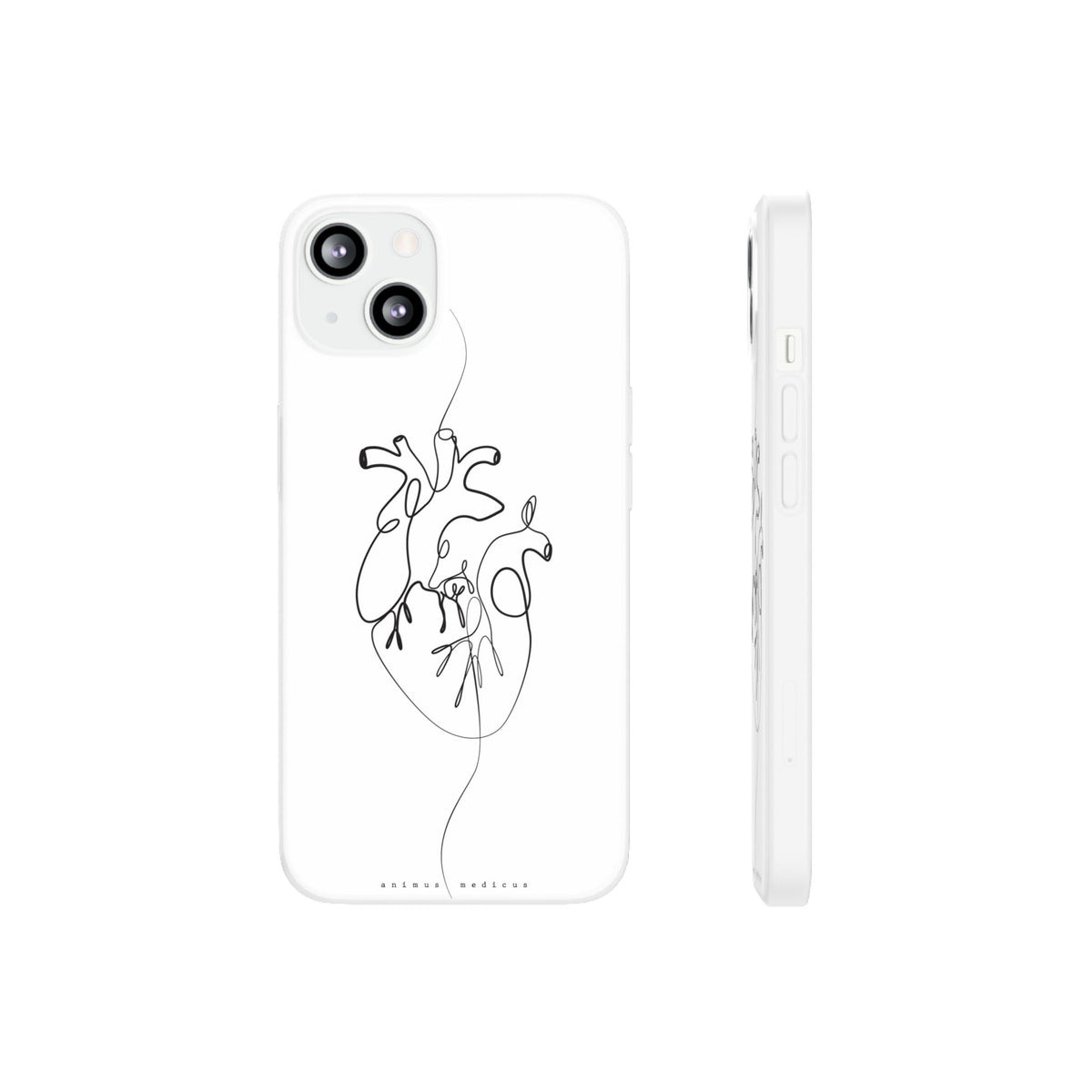 Tauche ein in die elegante Welt der Anatomie mit unserer Handyhülle, die das Herz in einem minimalistischen Design zeigt. Diese Hülle ist mehr als nur ein Schutz – sie ist ein Statement für alle, die klare Linien und zeitlose Ästhetik schätzen.